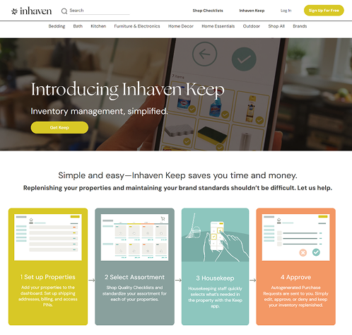 Inhaven is a B2B marketplace empowering vacation rental property managers with a one-stop shop for curated, high-quality supplies at wholesale prices. It’s a professional procurement solution for the vacation rental industry. Their vision is to help property managers set and maintain exceptional standards across their vacation rentals, ensuring a consistent and luxurious experience for guests. With over 40,000 listings in the US registered on their platform, Inhaven plays a crucial role in the hospitality B2B commerce space.